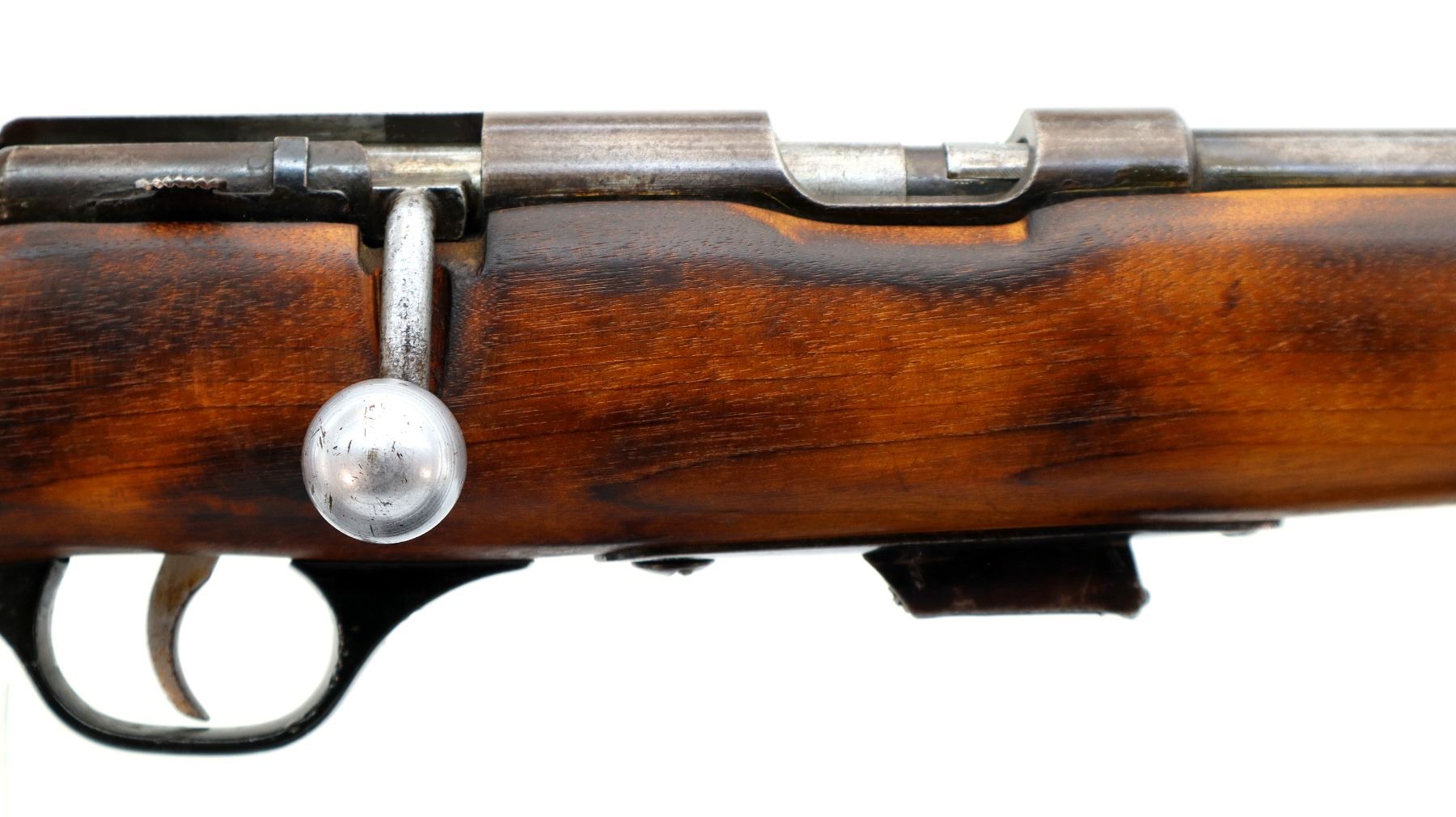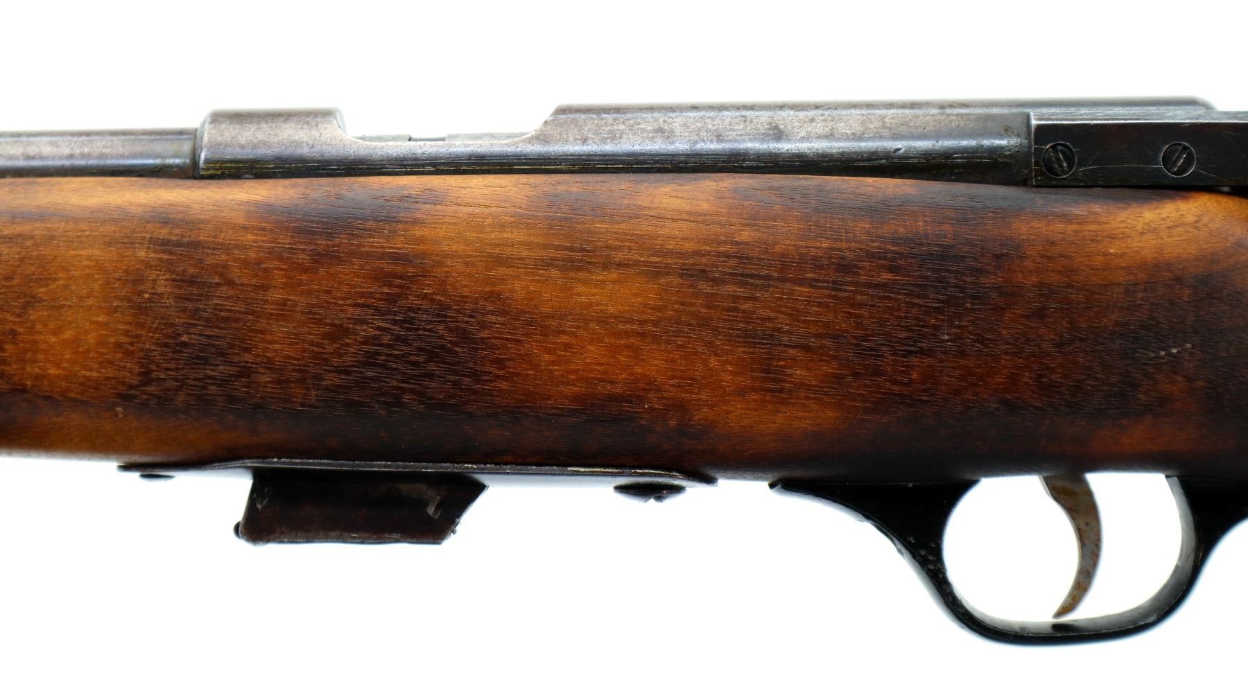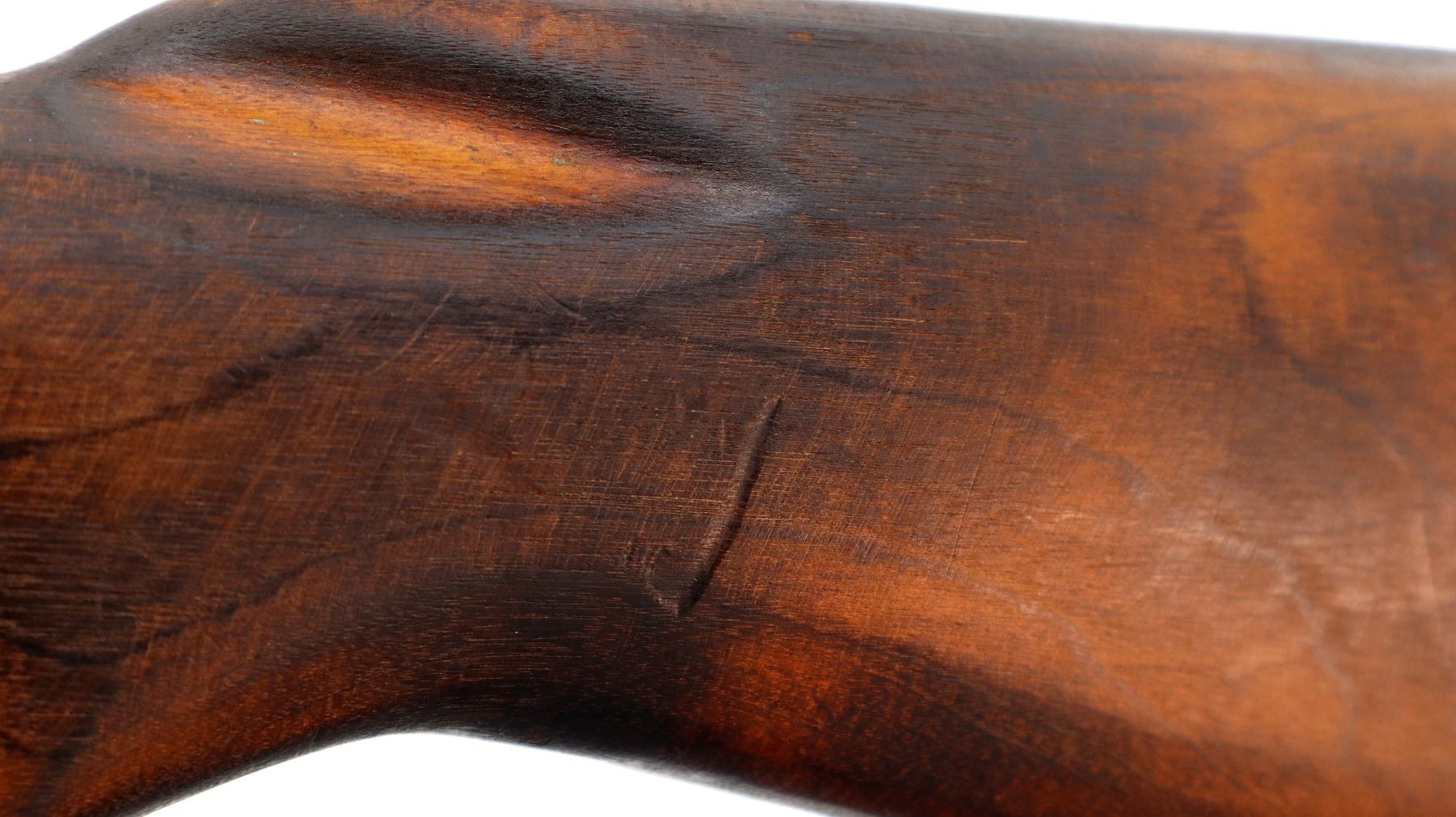 Wear: Metal finish turning brown with light pitting, rust speckles, scratches, handling marks and wear. Stock shows marks, scratches and wear.
