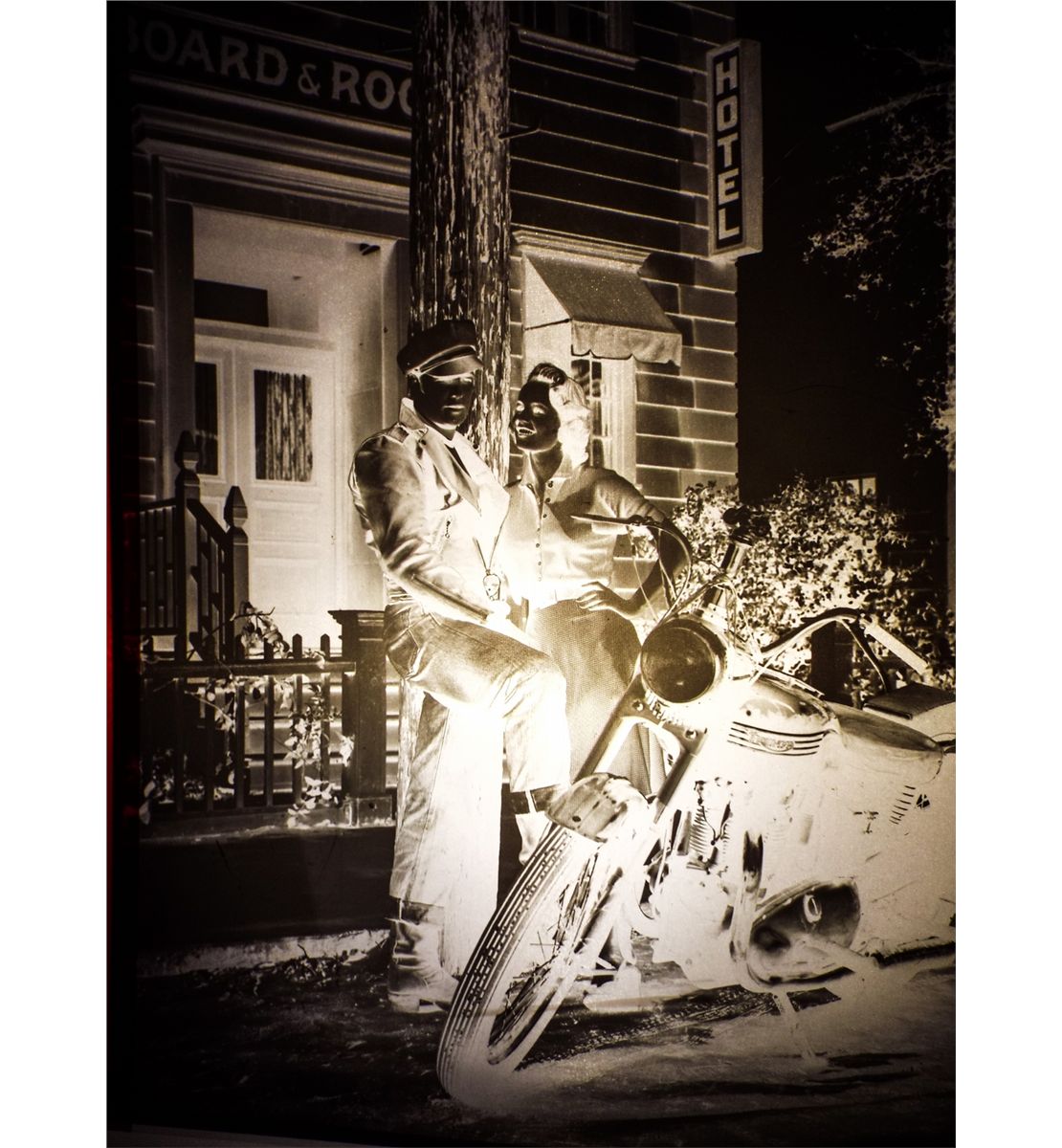 MARLON BRANDO TRANSPARENCY FROM THE 1953 AMERICAN OUTLAW FILM THE WILD ONE DIRECTED BY LASZLO BENEDEK AND PRODUCED BY STANLEY KRAMER.
