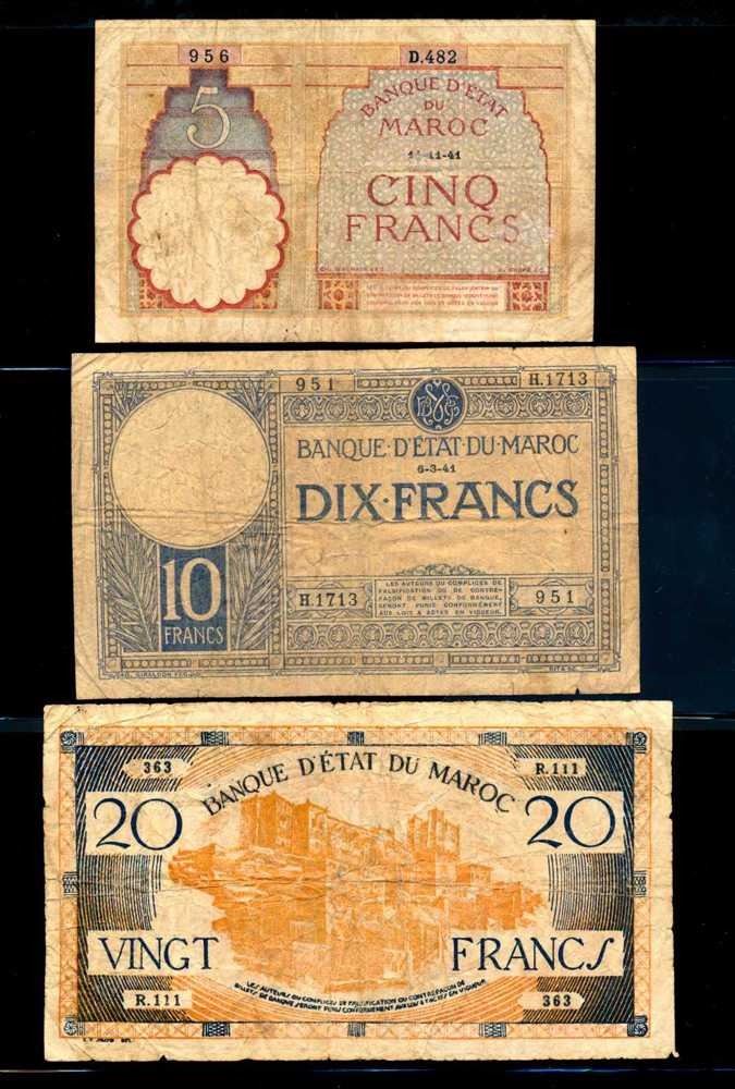 Including 5 francs 15-11-1941 VG-F, 10 francs 6-3-1941 VG-F, 20 francs ND VG.