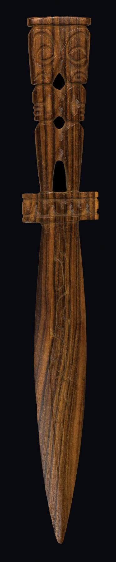 (Mid-20th Century) Two-tone hardwood with two opposing ancestor figures. 13"x2". VG+ with typical wear.