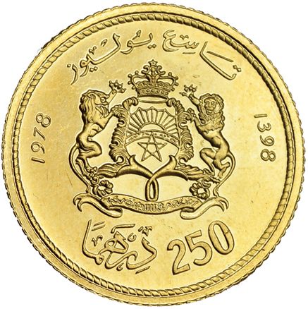 MARRUECOS. 250 dírhams. 1398H(1978). Cumpleaños del rey Hassan. Tirada 150 monedas. Y-66. Prueba.