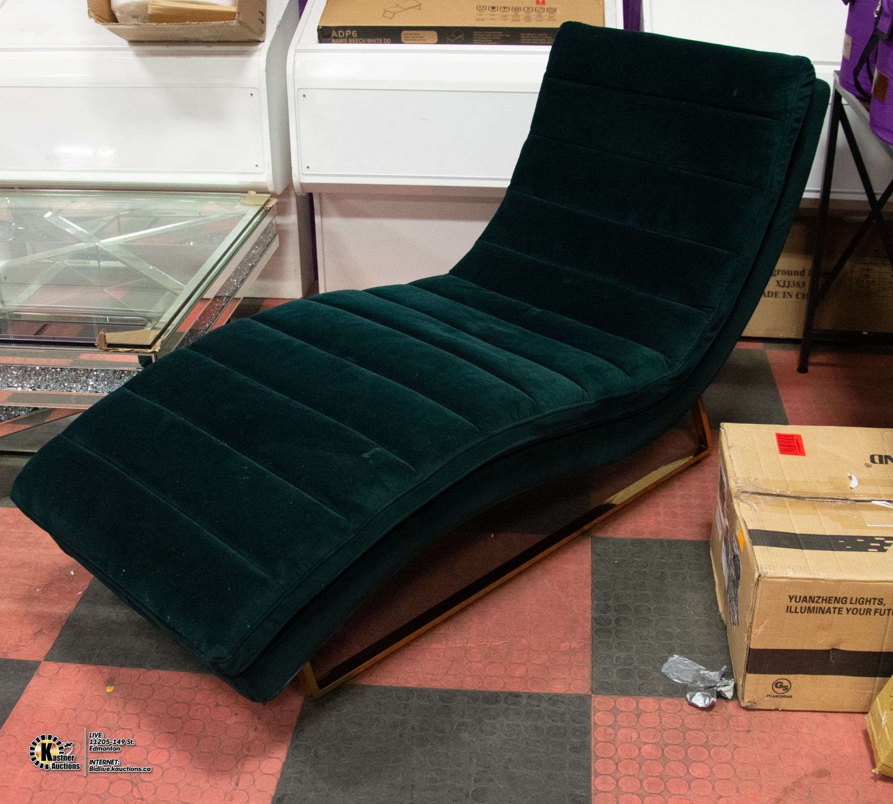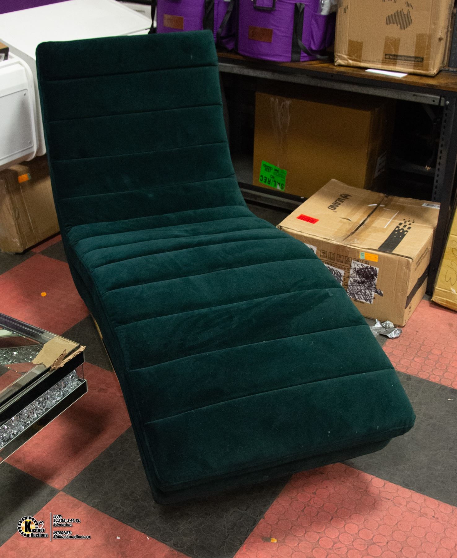 SOFT, VELVET UPHOLSTERY WRAPS AROUND THE CHAISE WITH MATCHING FABRIC PIPING