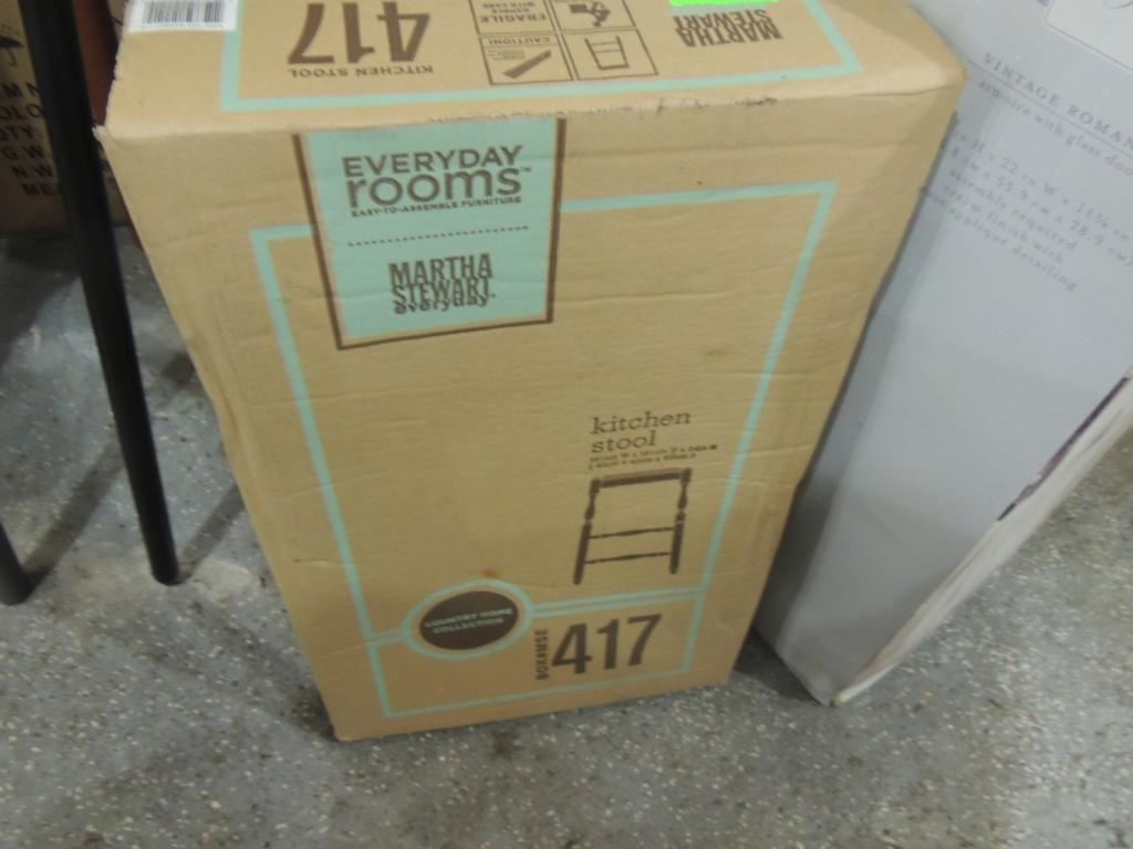 MARTHA STEWART KITCHEN STOOL, NEW IN BOX DESIGNER STOOL, KITCHEN STOOL AS SHOWN SEE PHOTO FOR MORE DETAILS.