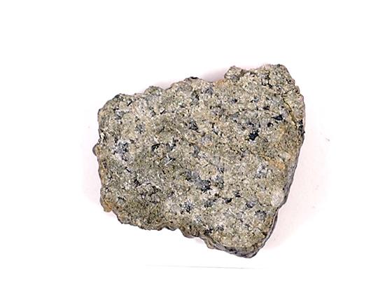 In November of 2005 a number of small complete meteorites (a total weight of only about a Kilogram) from Mars were found in the Sahara desert. The reason there were only small individual meteorites is that the original larger meteorite broke up high in the Earth’s atmosphere and the small pieces continued to burn as they hit the Earth. These meteorites are rare Basaltic Martian Shergotites from an ancient lava flow on Mars with vesicular glass pockets visible as flecks of glass in this specimen and trapped melt inclusions from the large impact that occurred on Mars millions of years ago. This 10mmX8mm .8gram end cut designated as NWA 2987 is actually half of a complete 2.01 gram meteorite(about .4 grams lost in cutting) and is one of the freshest Shergotite Martian meteorites ever found. It is a light gray in color with dark grey crystallized igneous melt inclusions within iron-titanium oxide grains along with shiny patches of shock-produced vesicular glass. A somewhat larger 4 gram meteorite from this fall (NWA 2987, NWA 2986, NWA 4766,NWA 4783, NWA 4857 and NWA 4880 are all meteorites from this one fall) recently realized over $17,000 at auction in New York.