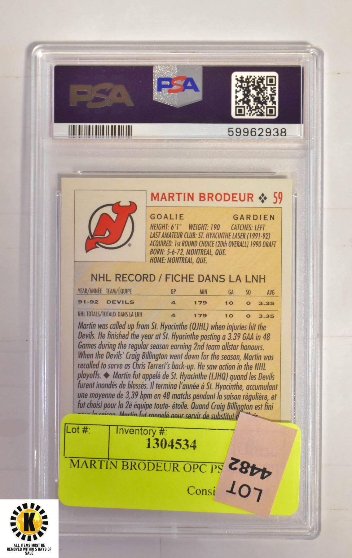 MARTIN BRODEUR OPC PSA 9 (1992)