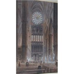 MARTIN, Henry, A.R.C.A., 1837-1902. "Interior of a Cathedral". Aquarelle, signée. Watercolour, signed. 14" x 10" - 35.5cm x 25.4cm. $500/700