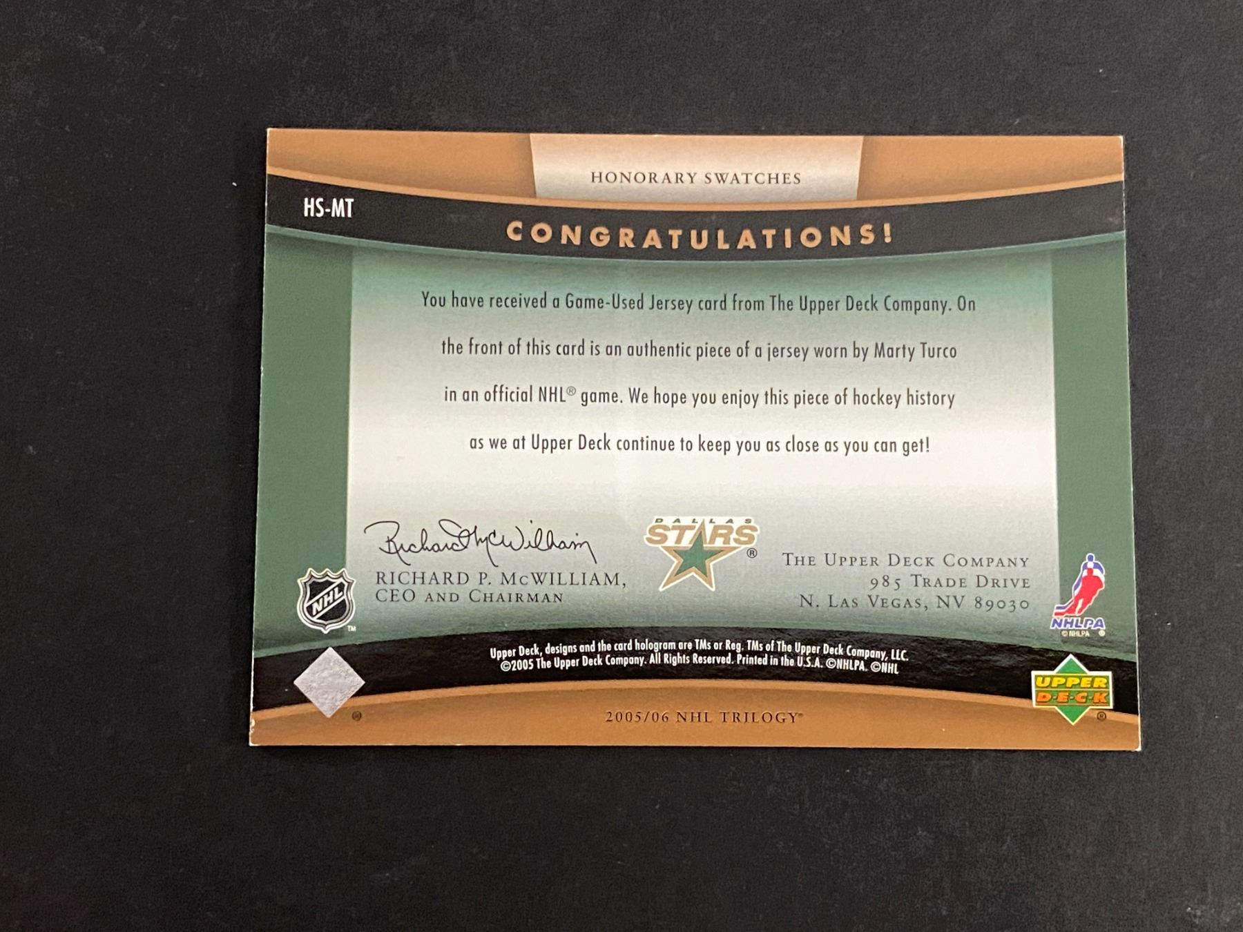 MARTY TURCO DALLAS STARS JERSEY CARD