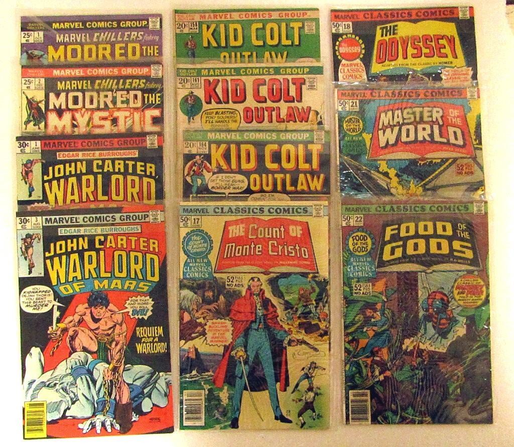MARVEL #1 & #2 JOHN CARTER WARLORD OF MARS; 3-KID COLT OUTLAW #158, 161, 164; THE COUNT OF MONTE CRISTO #17, THE ODYSSEY #18, MASTER OF THE WORLD #21, FOOD OF THE GODS #22 - ALL NICE