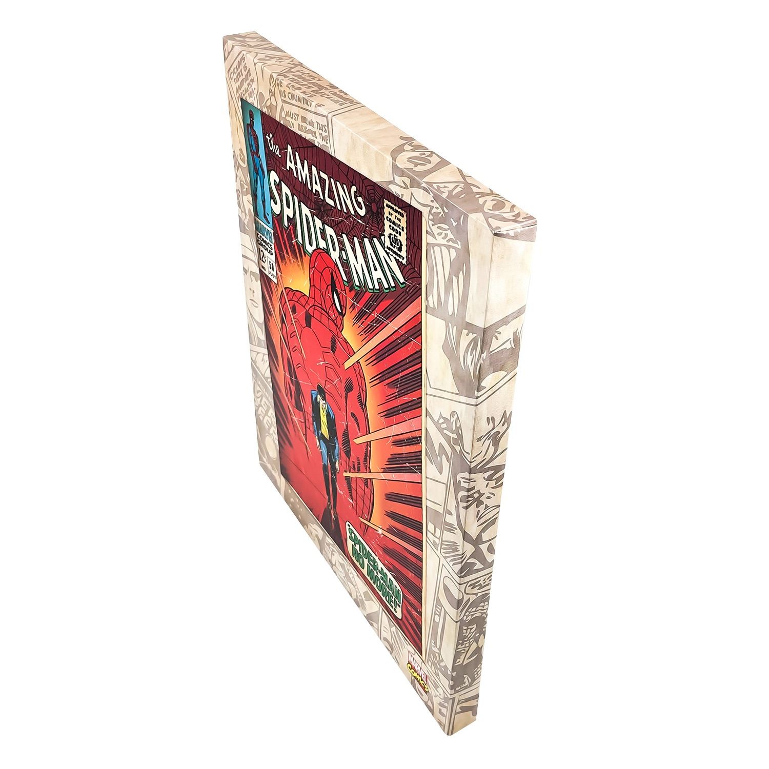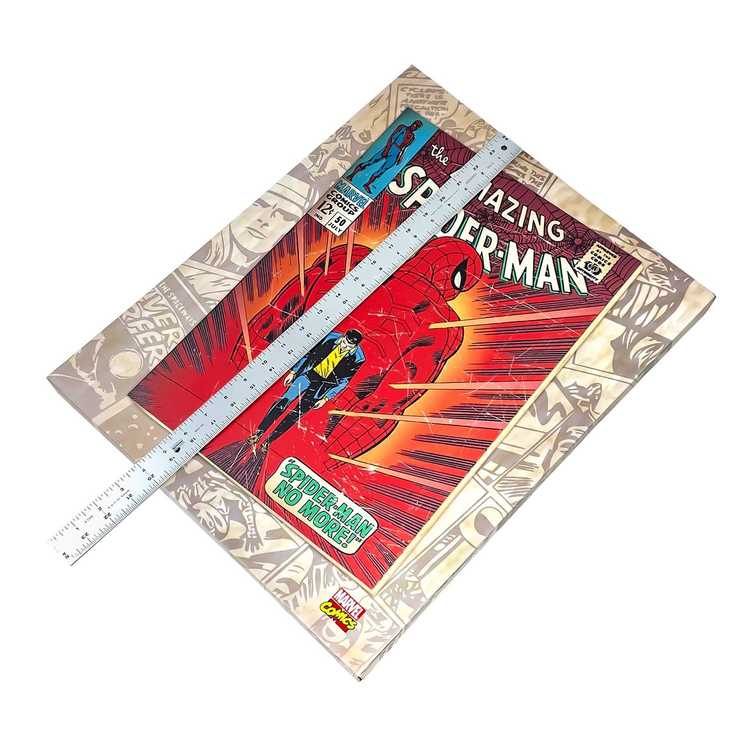 #8942 - MARVEL COMICS GROUP - THE AMAZING SPIDER-MAN #50 CANVAS ART PRINT. LARGE PRINTED COVER OF THE MARVEL COMICS “AMAZING SPIDER-MAN #50” COMIC BOOK COVER FROM 1967. SUPER HERO COMIC CARTOON CHARACTER CANVAS ART PRINT WITH WOOD FRAME. COLLECTIBLE HOME OR OFFICE WALL DECOR PICTURE. MEASURES 20” (51 CM) HIGH BY 16” (41 CM) WIDE