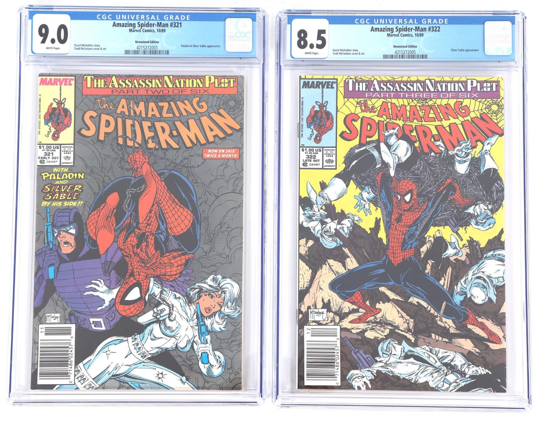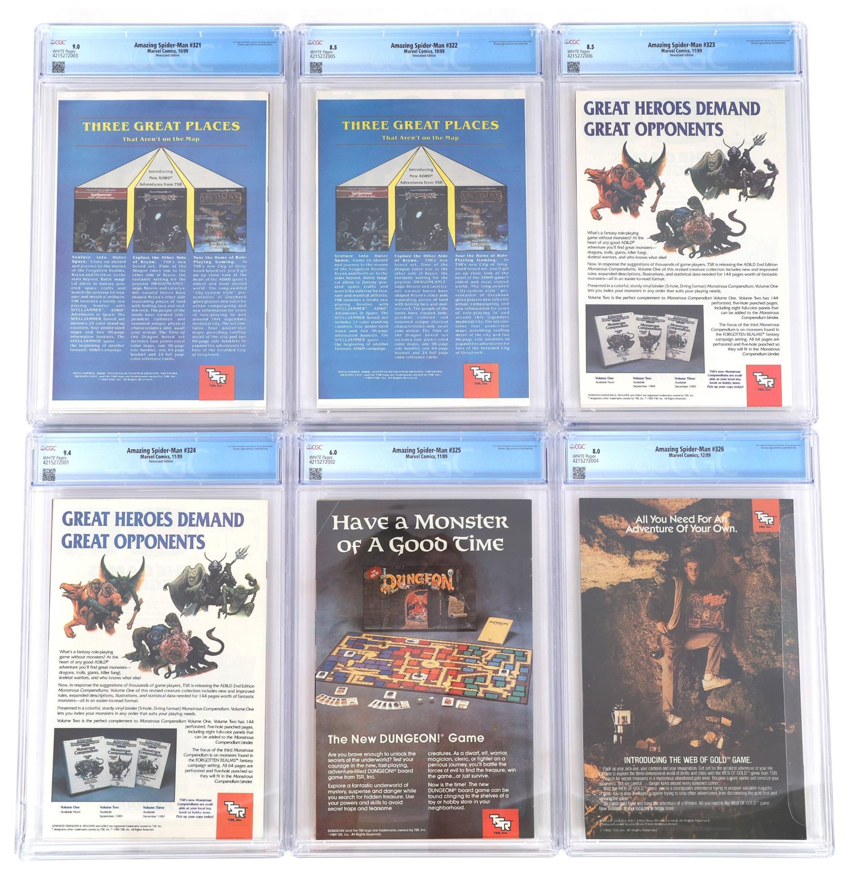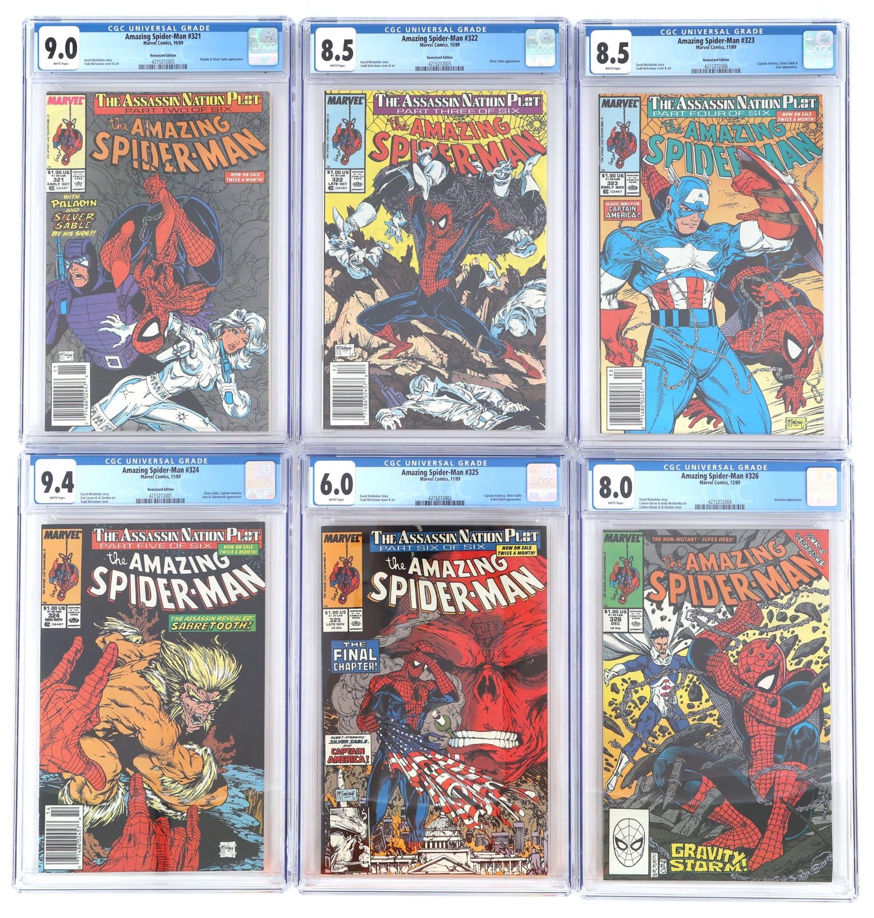 CGC Universal Grade Marvel The Amazing Spider-Man comic book issues #321-326. Grades include: