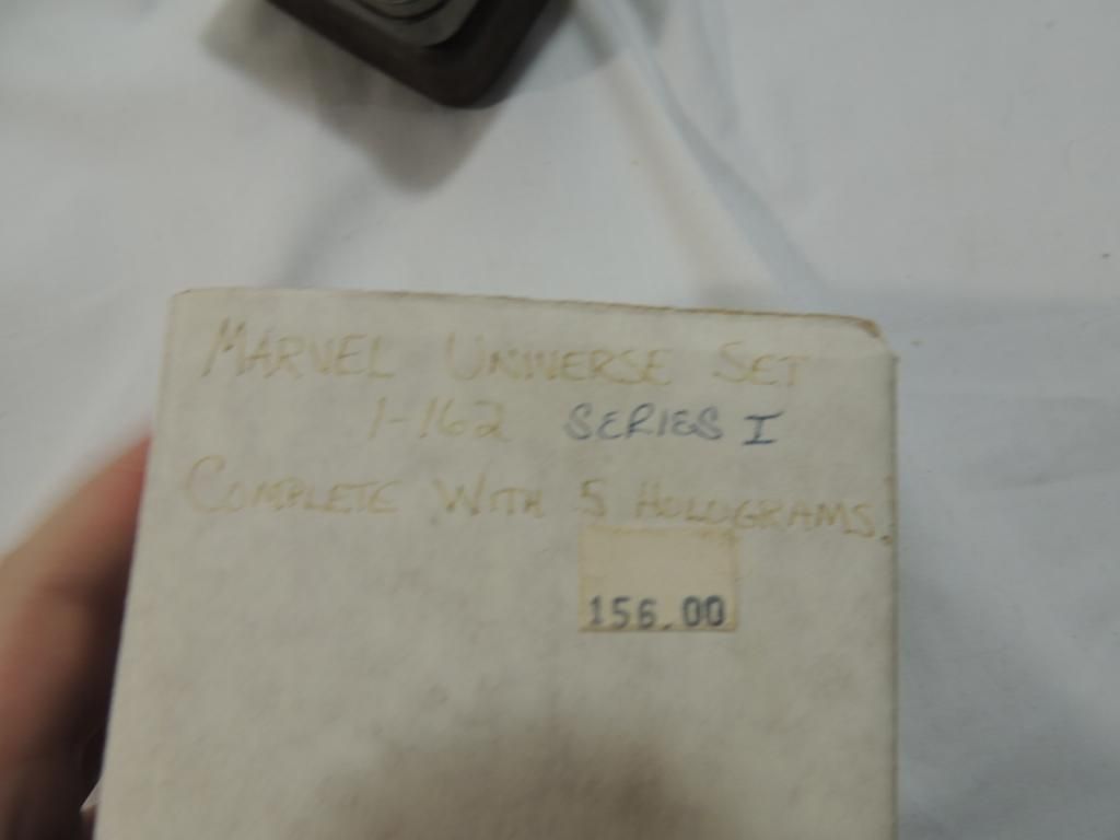 MARVEL UNIVERSE SET SERIES 1 1-162 COMPLETE SET WITH HOLOGRAMS. TRADING CARDS COMPLETE SET COLLECTIBLE. AS SHOWN SEE PHOTO FOR MORE DETAILS.