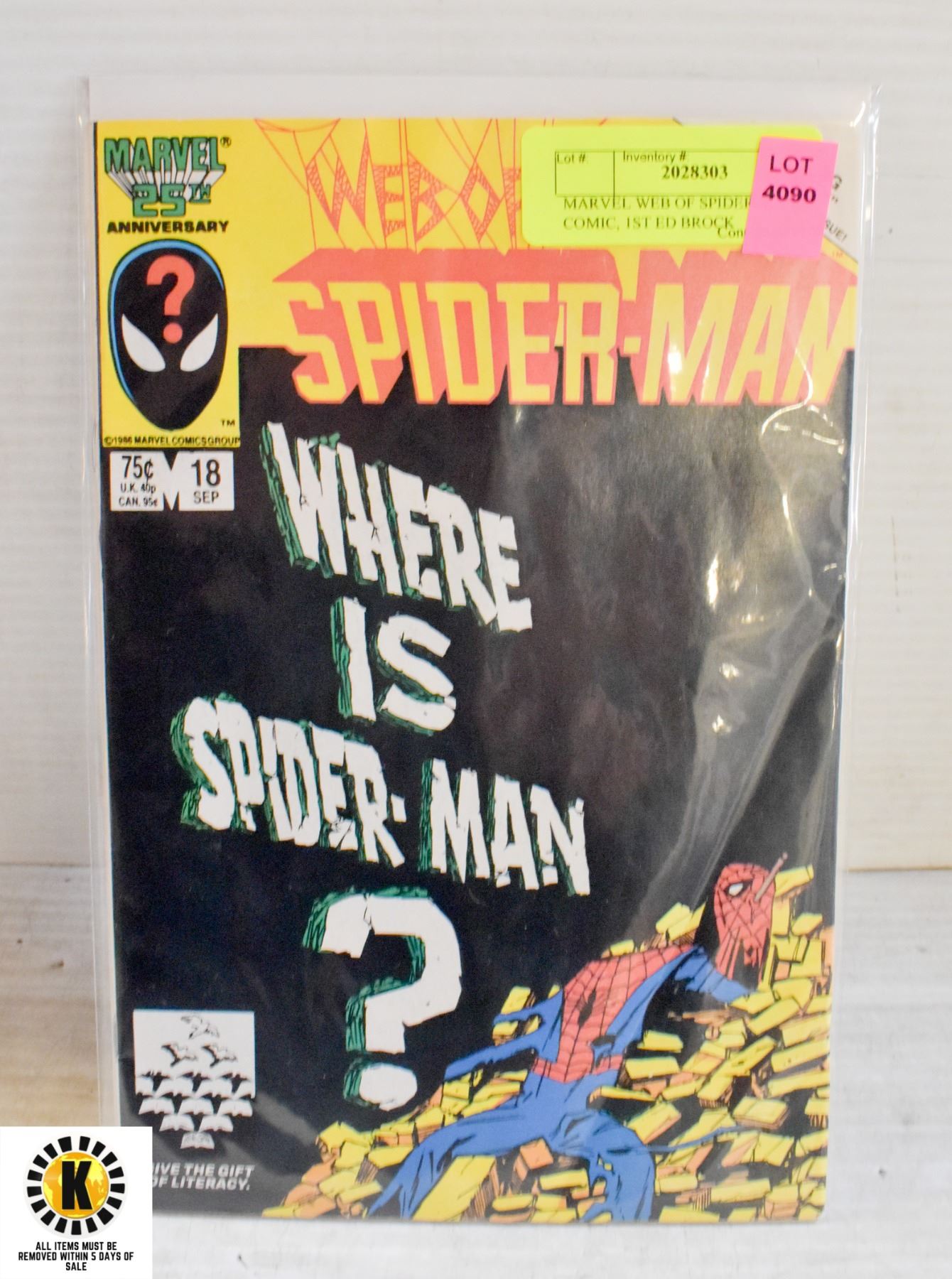 MARVEL WEB OF SPIDER-MAN #1 COMIC, 1ST ED BROCK