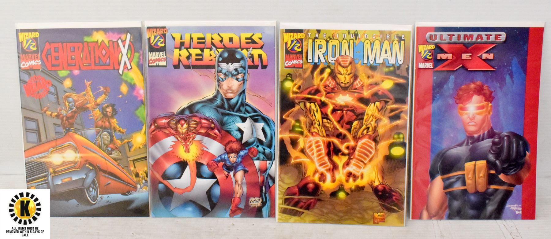 4 BOOKS, 1/2 IRON MAN WITH COA, 1/2 HEROES REBORN, 1/2 GENERATION X, 1/2 ULTIMATE X-MEN WITH COA