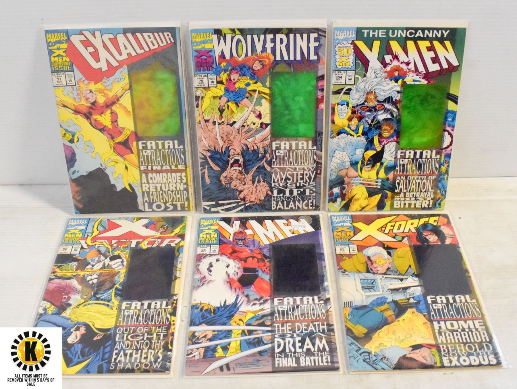 6 BOOKS, EXCLIBUR 71, WOLVERINE 75, UNCANNY X-MEN 304, X-FACTOR 92, X-MEN 25, X-FORCE 25