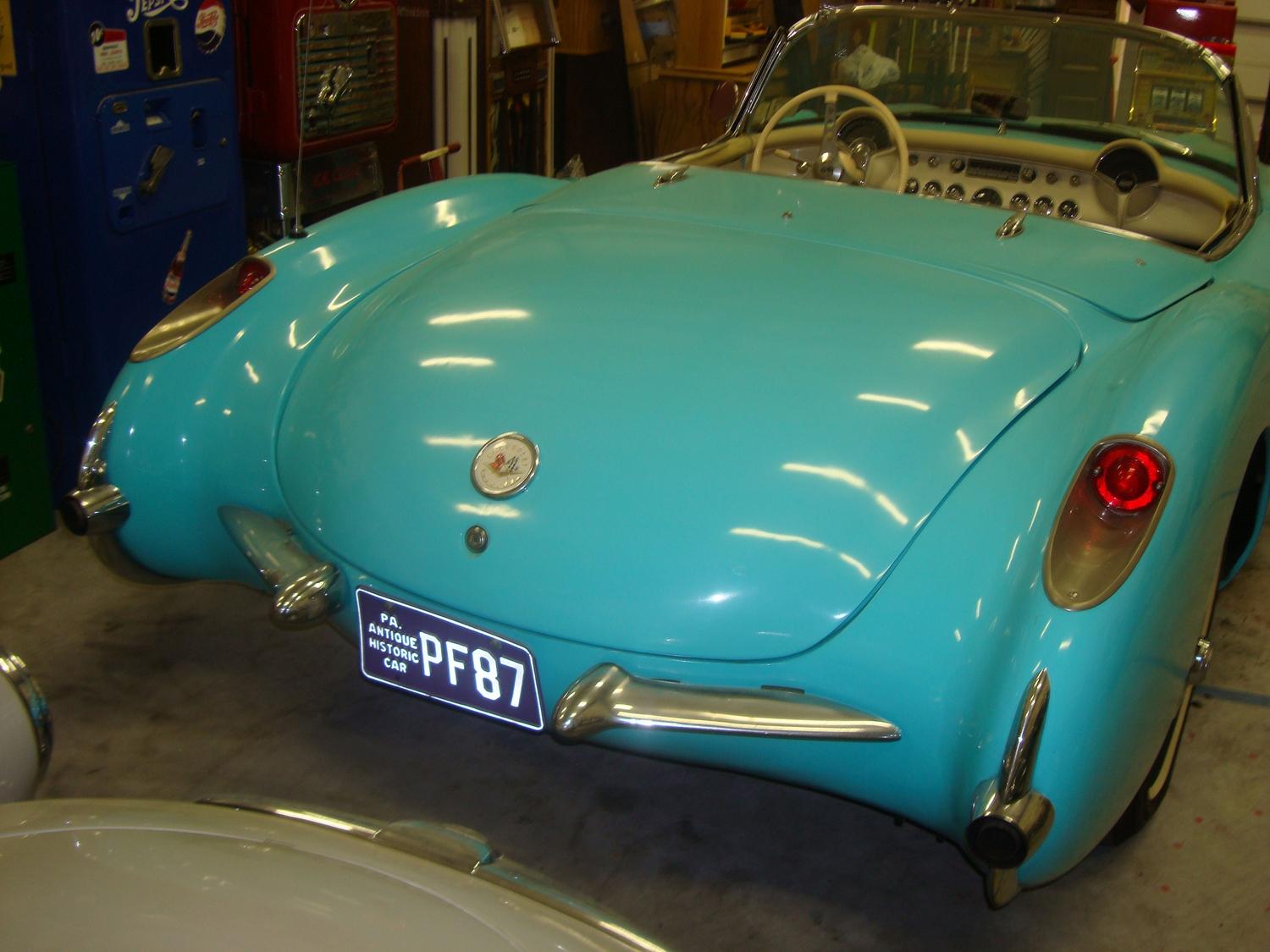 This Vette has the 265ci, 225hp Engine (2 4 bbl. carburetors). It is Cascade Green with a Beige interior & soft top in addition to having a matching hard top. Only 8.36 % of Corvettes made that year were painted this color scheme.