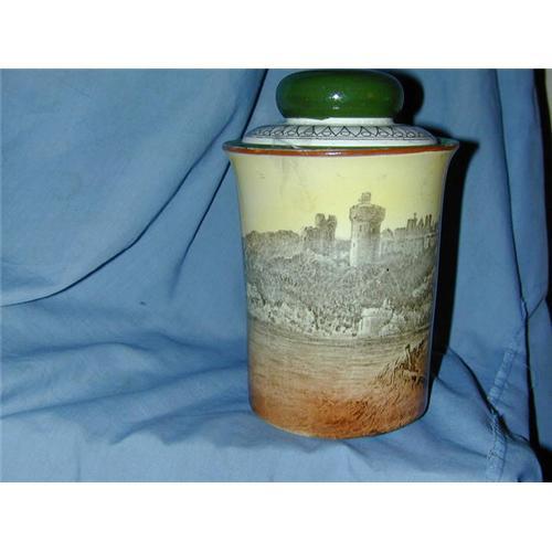 On the humidor these is a picture of Arundel Castle. Believe that it is a painting. Signed to the base by Doulton, England, and indicating that the picture is of Arundel Castle. Beautiful. No chips or cracks.