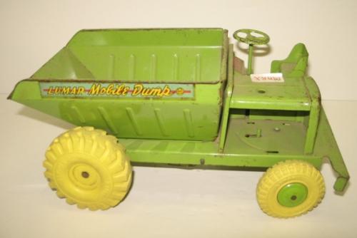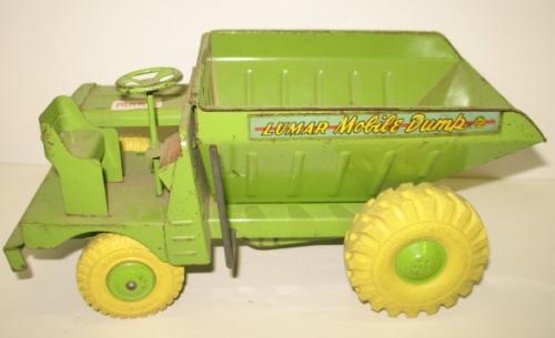MARX LUMAR MOBILE DUMP TRUCK. Shows signs of wear and loss to green paint. 12” L