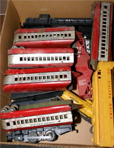 MARX M10000 RED AND SILVER COACHES (5) PLUS MISC LIONEL PREWAR, POSTWAR, & MPC
