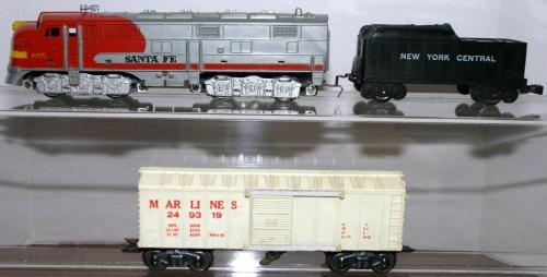 MARX SANTA FE E-UNIT, MARX OP BOX CAR, NYC TENDER