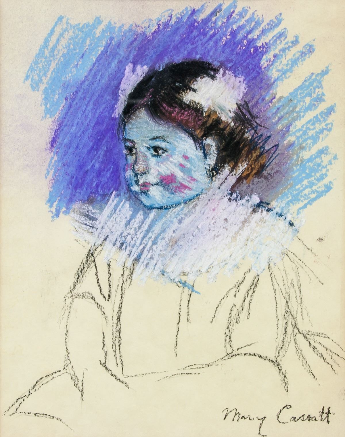 Pastel and charcoal on paper, framed. Featuring a portrait of a girl. Signed and attr. Mary Cassatt (American, 1844-1926) on the lower right corner. Accompanied with a certificate of authenticity. 25 x 19 cm (9.8 x 7.5 inches). Frame size: 39 x 34 cm (15.3 x 13.4 inches). Mary Cassatt was an American Impressionist painter best known for works depicting mothers with their children such as The Boating Party (1893). Cassatt was a determined artist who achieved critical and commercial success at a time when few women painters were taken seriously. “I have touched with a sense of art some people—they felt the love and the life,” she once said. Born on May 22, 1884 in Allegheny City, PA, Cassatt traveled throughout Europe at an early age. There, she developed her interest in art and went on to spend much of her adult life in Paris. She participated in numerous early exhibitions of Impressionist art, and maintained a long friendship with Edgar Degas. Like Degas, Cassatt’s work never wholly broke with tradition, but rather assimilated some of the characteristics of Impressionism into a realistic style. The artist died on June 14, 1926 in Paris, France. Today, her works are found in the collections of the Art Institute of Chicago, the Musee d’Orsay in Paris, The Museum of Modern Art in New York, and the Carnegie Museum of Art in Pittsburgh, among others. PROVENANCE: Southern Ontario estate