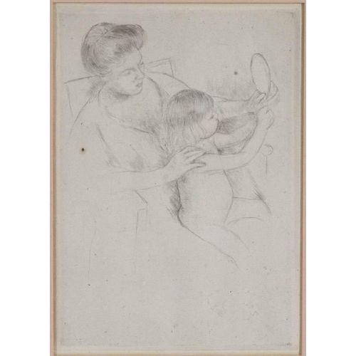 MARY CASSATT etching, 8"x 5 1/2" sight Looking into the Hand Mirror CONDITION REPORT: a single spot of foxing.
