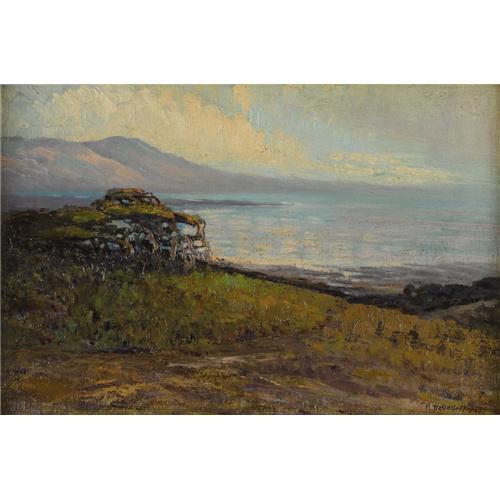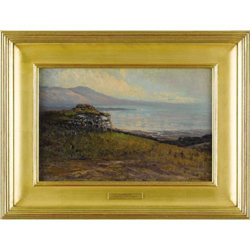 <B>MARY DENEALE MORGAN</B></I> (American 1868-1948)<BR><I>Monterey Bay</B></I><BR>Oil on canvas<BR>12 x 18 inches (30.4 x 45.7 cm)<BR>Signed lower right: <I>M. DeNeale Morgan</B></I><BR><BR>Provenance:<BR>Private collection (Washington)<BR><BR> <B>Condition Report:</B> Normal signs of wear as appropriate with age, and craquelure.<BR><BR><b>Shipping:</b> Requires 3rd Party Shipping (<a target="_blank" href="http://www.heritageauctions.com/common/shipping.php">view shipping information</a>)