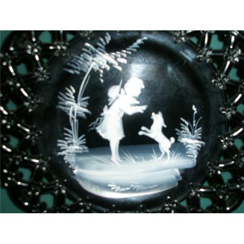WE PRESENT TO YOU A MARY GREGORY EIGHT AND ONE HALF INCH DIAMETER ART GLASS PLATE. CONDITION OF THIS HIGHLY COLLECTABLE PLATE IS SIMPLY SUPERB!