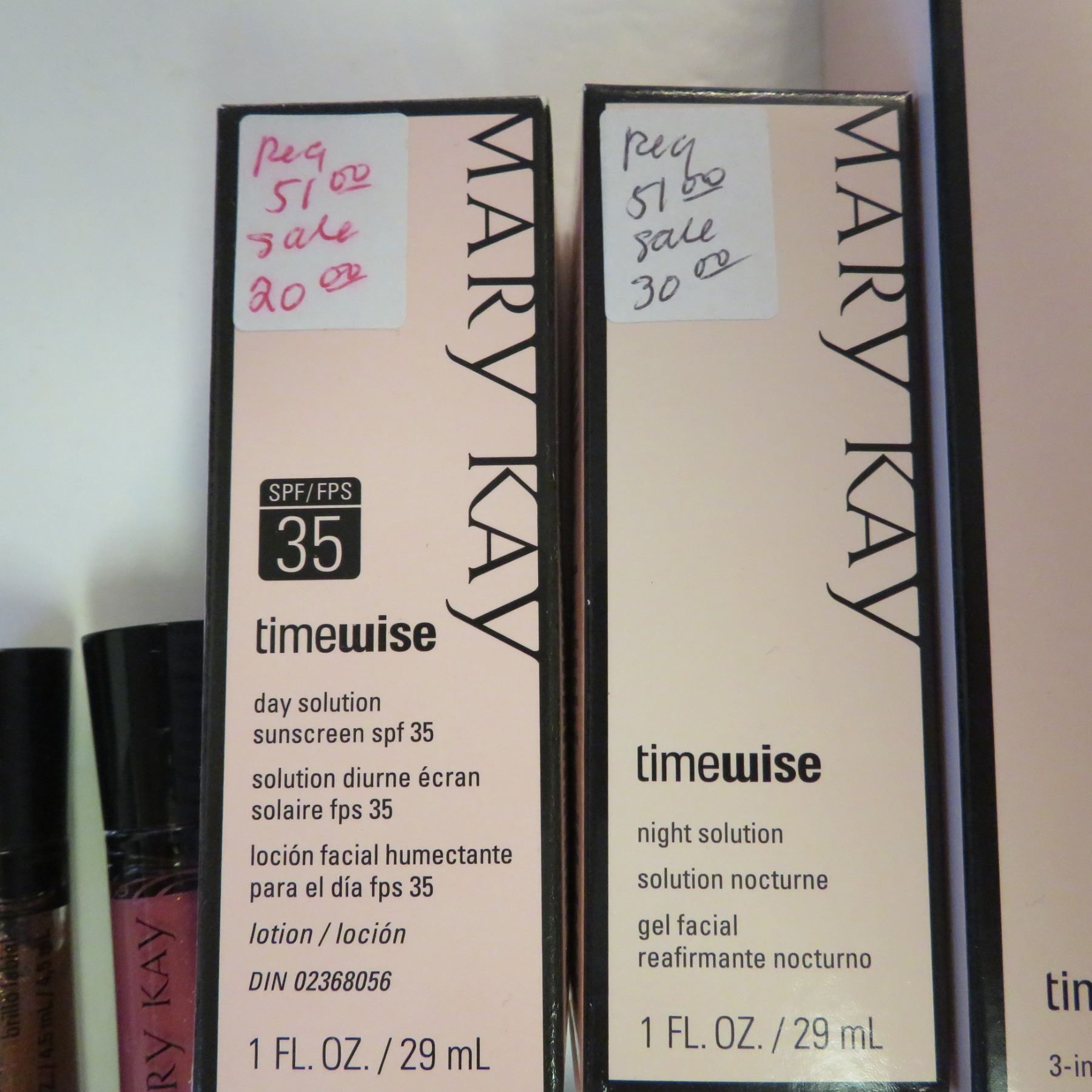 Includes 3 in one cleanser, make up remover, day solution sunscreen spf 35, night solution, two shades of lip gloss, mascara & lip protector spf 15