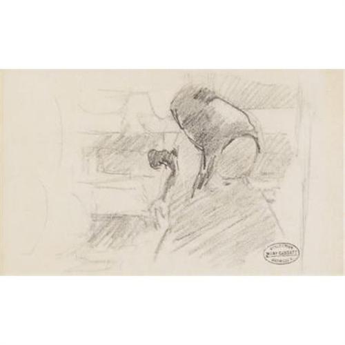 <B>MARY STEVENSON CASSATT </B></I>(American 1844-1926)<BR><I>Study for a Woman in Black at the Opera</B></I>, circa 1880<BR>Charcoal and pencil on paper<BR>5-1/4 x 8-1/4 inches (13.3 x 21.0 cm)<BR>Stamped lower right: <I>Mathilde X Collection</B></I><BR> <BR>Provenance:<BR>Acquired from the artist by Mathilde Vallet, 1927<BR>Sale, Mathilde X , Paris, 1931<BR>Hirschl & Adler Galleries, New York<BR><BR>The present work is a study by Mary Cassatt for her large oil painting <I>A Woman in Black at the Opera</B></I> in the Museum of Fine Arts, Boston. This drawing, along with other pencil studies for the finished canvas, is listed in Adelyn Dohme Breeskin's catalogue raisonné on the artist. The drawing belonged to Mathilde Vallet, Mary Cassatt's longtime companion and housekeeper.<BR><BR><b>Shipping:</b> Requires 3rd Party Shipping (<a target="_blank" href="http://www.heritageauctions.com/common/shipping.php">view shipping information</a>)