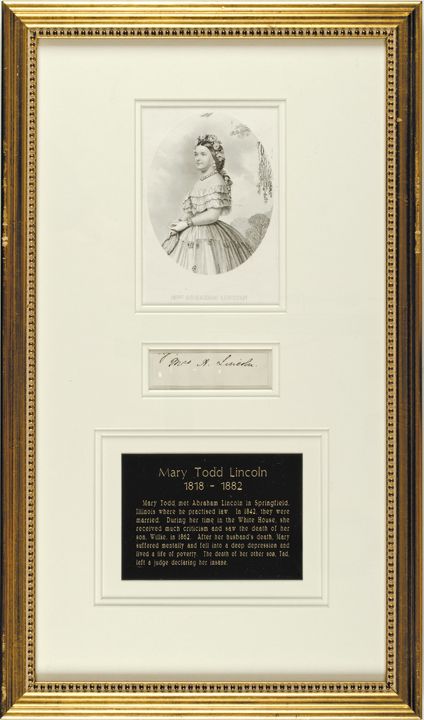 MARY TODD LINCOLN, Superb Framed Presentation Cut Signature