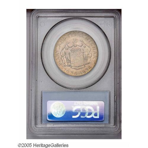 <B>1934<50C> Maryland MS66 PCGS.</B></I> Highly lustrous surfaces are visited by whispers of ice-blue and rose patina, and exhibit sharply impressed devices. A few minute marks are noted on Calvert's motif. PCGS has seen 43 coins grading finer (11/05).<BR><I>From The Henry R. Luhrs Collection.</B></I>
