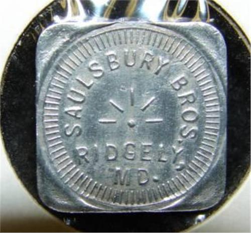 MARYLAND TOKEN. Marked “Saulsbury Bros./Ridgely, MD.” and “2 ½” on reverse.