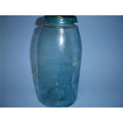 9 INCHES HIGH, BEAUITFUL BLUE, VERY TALL JAR,WITH LID. THERE HASNT BEEN THAT MANY I HAVE SEEN THIS TALL.( 1858 ) ON THE FRONT SIDE.