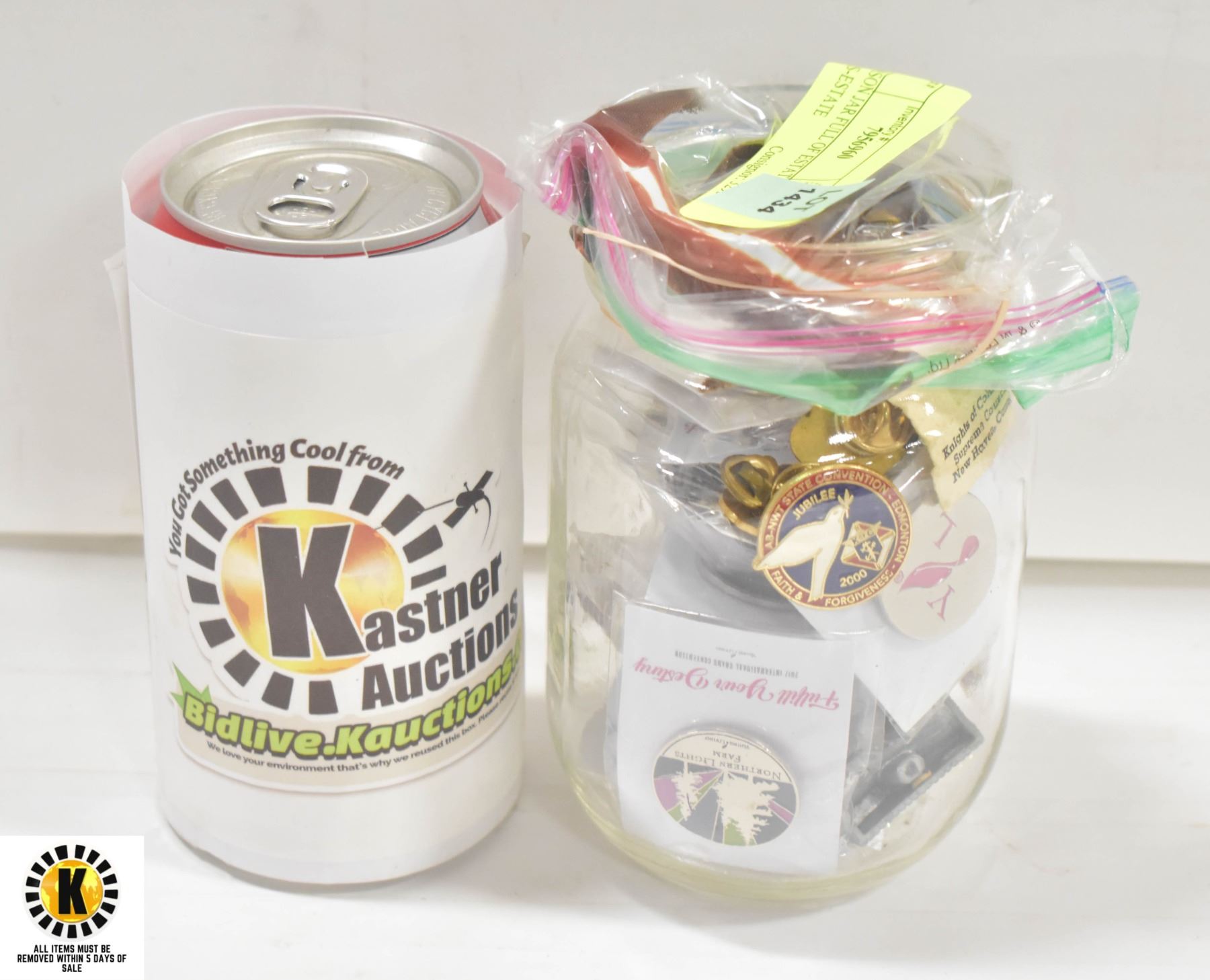 MASON JAR FULL OF ESTATE LAPEL PINS-ESTATE