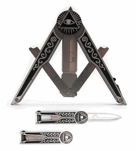 MASONIC COMPASS STYLE SILVER AND BLACK POCKET KNIFE **|**|** MASONIC COMPASS STYLE SILVER AND BLACK POCKET KNIFE