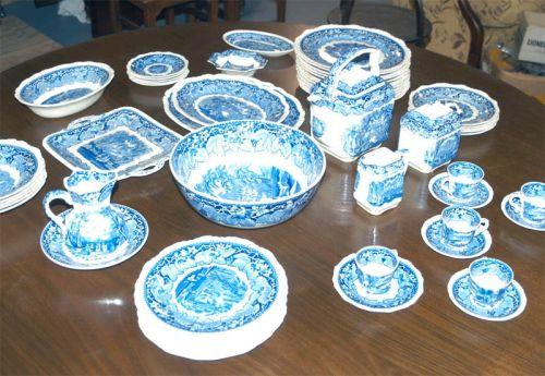 MASON'S VISTA BLUE PARTIAL DINNER SERVICE, 52 pieces including tea set and serving pieces, condition: excellent as observed, SHIPPING: THIS ITEM MUST BE PICKED UP IN PERSON WITHIN 30 DAYS- NO SHIPPING IS AVAILABLE.