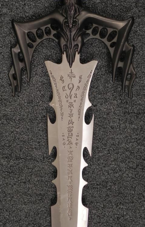 MASSIVE CONTEMPORARY SWORD WITH HEAVY STAINLESS STEEL BLADE-KITRAE-40" LONG * * HUGE WELL MADE SWORD OF FIRE CONTEMPORARY PIECE--HAS MANY ENGRAVED ANCIENT RUNES-STAINLESS STEEL-FAUX WAVY TEMPER LINE-MARKED DESIGN 2001-UCC *