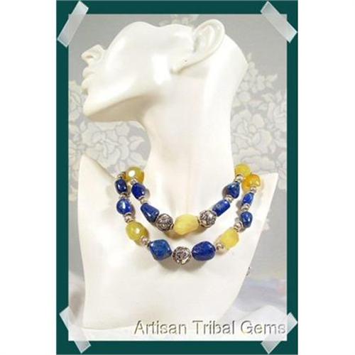 PLEASE NOTE I only ship to Canada and USA. If paypals is used the address MUST be confirmed and I require a signature on all paypals shipments. Thanks Steven. <P>MASSIVE Double LAPIS Chalcedony Gemstone Necklace...