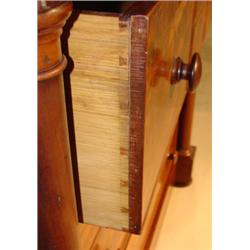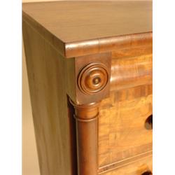 Massive Empire walnut 6 drawer chest of drawers. Has columns and secret drawers on top and bottom. Missing some veneer along bottom and has slight staining to top. 52" H, 53.5" W, 23" D.