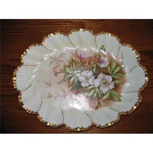 GORGEOUS HAND PAINTED ARTIST SIGNED LIMOGES FLORAL PLATTER FROM 1896 IN EXCELLENT CONDITION!</em></td>