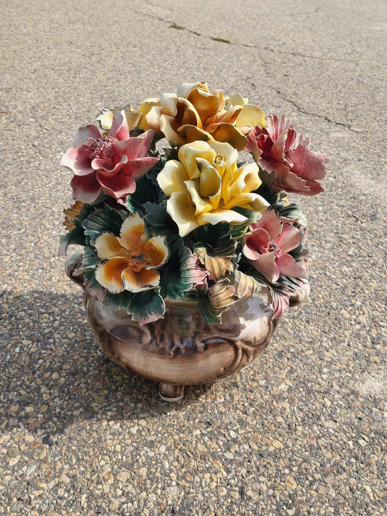 MASSIVE LARGE CAPODIMONTE FLORAL CENTREPIECE. SEE PICTURES. NOT IDEAL FOR SHIPPING. MEASURES APPROX 15 INCHES BY 13.5 INCHES WIDE