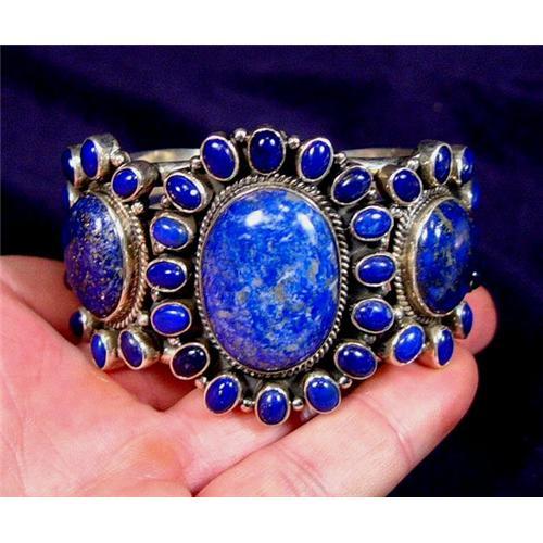 <tr><td>Title:MASSIVE Lapis Gemstone Sterling Tribal Cuff</td></tr>