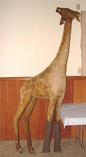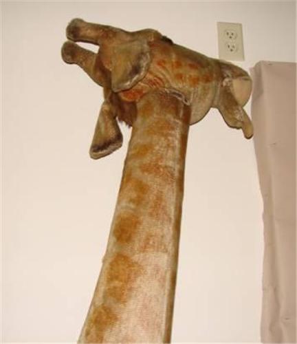 MASSIVE STIEFF GIRAFFE. Was possibly used as a store display. Giraffe shows wear throughout and damage at areas. Shows loss to fur throughout. 98" H