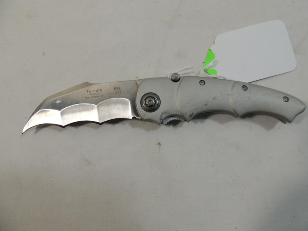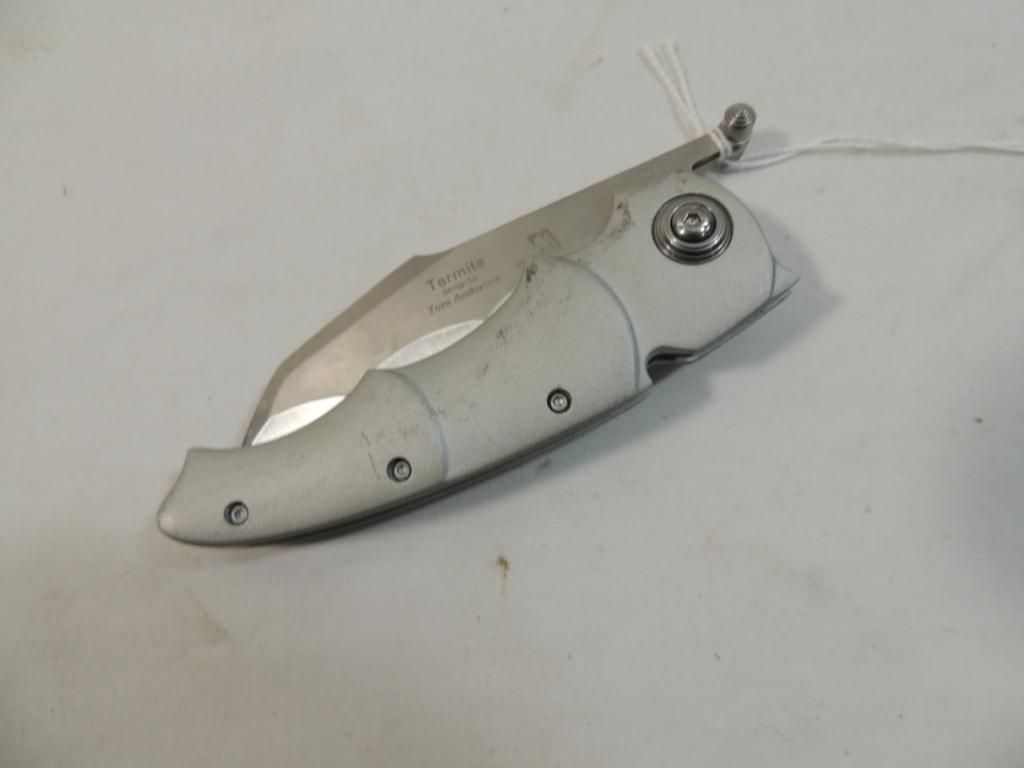 440 STAINLESS STEEL DESIGN MASTER CUTLERY TERMITE DESIGN BY TOM ANDERSON POCKET KNIFE. COLLECTIBLE AS SHOWN SEE PHOTO FOR MORE DETAILS.