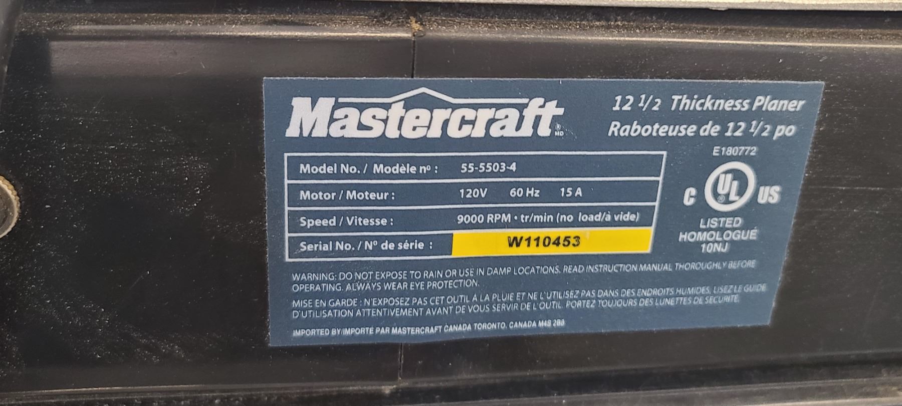 MASTERCRAFT 12 1/2" 12 1/2' PLANER