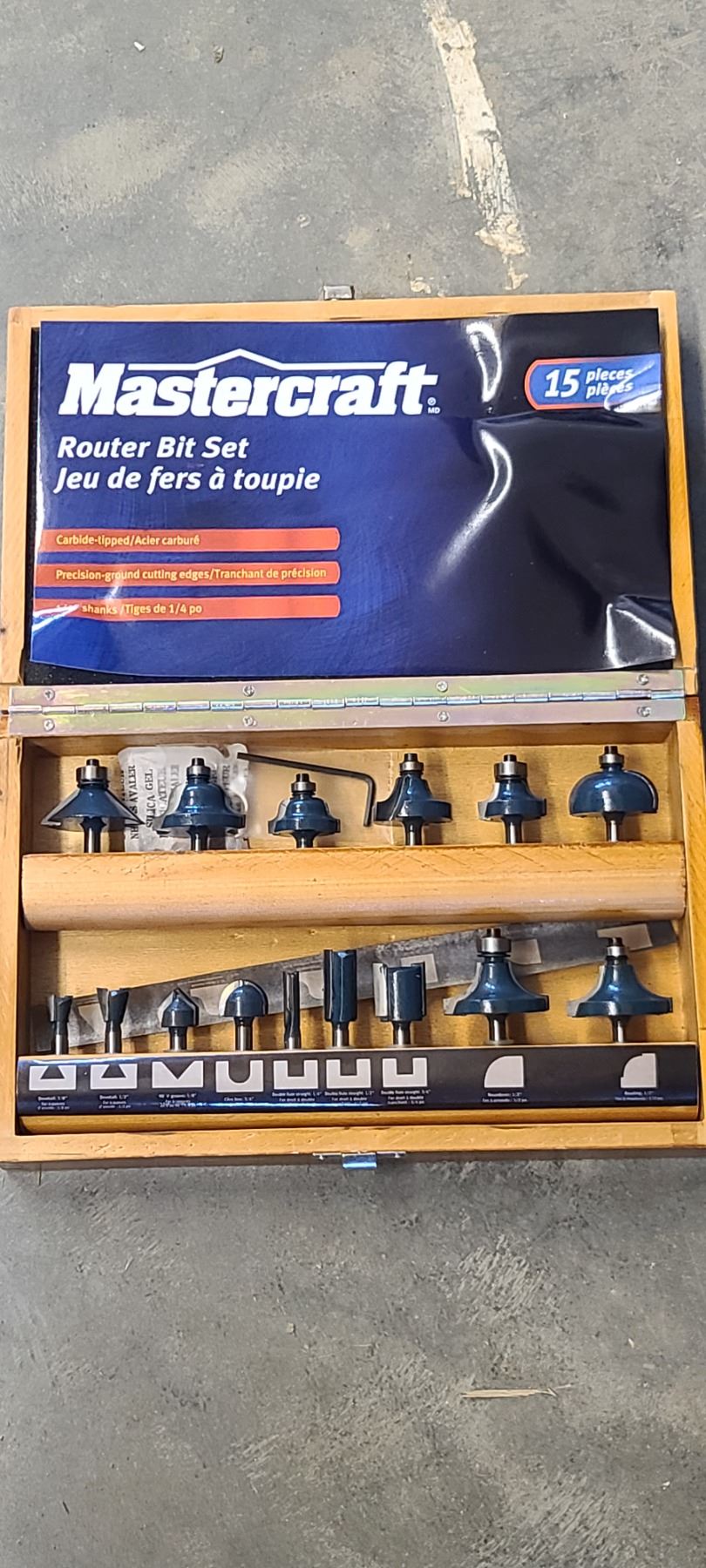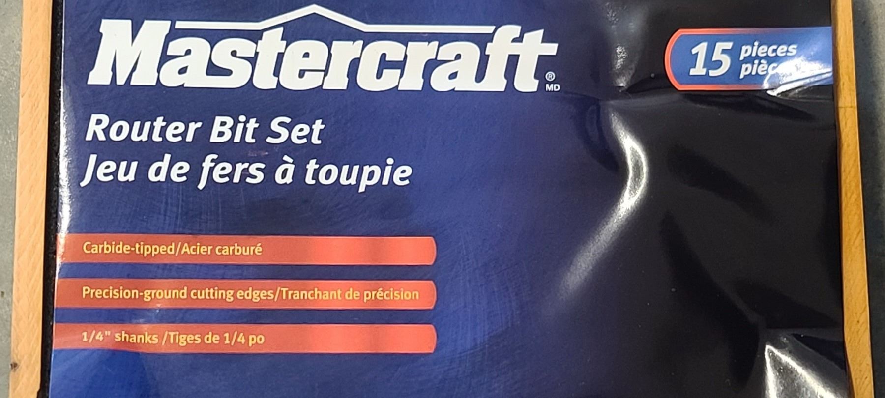 MASTERCRAFT 15 PC CARBIDE-TIPPED ROUTER BIT SET (IN WOOD CASE)