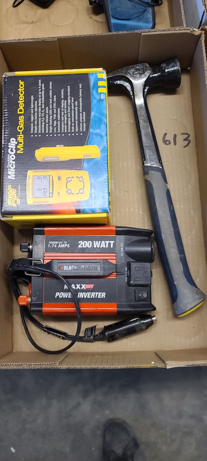 MASTERCRAFT 20OZ. FRAMING HAMMER, GAS ALERT MICRO CLIP MULTI GAS DETECTOR (BLK & DECKER) 200W POWR CONVERTER W/ IN VEHICLE ADAPTOR\