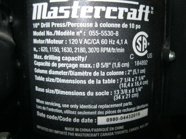 MASTERCRAFT DRILL PRESS