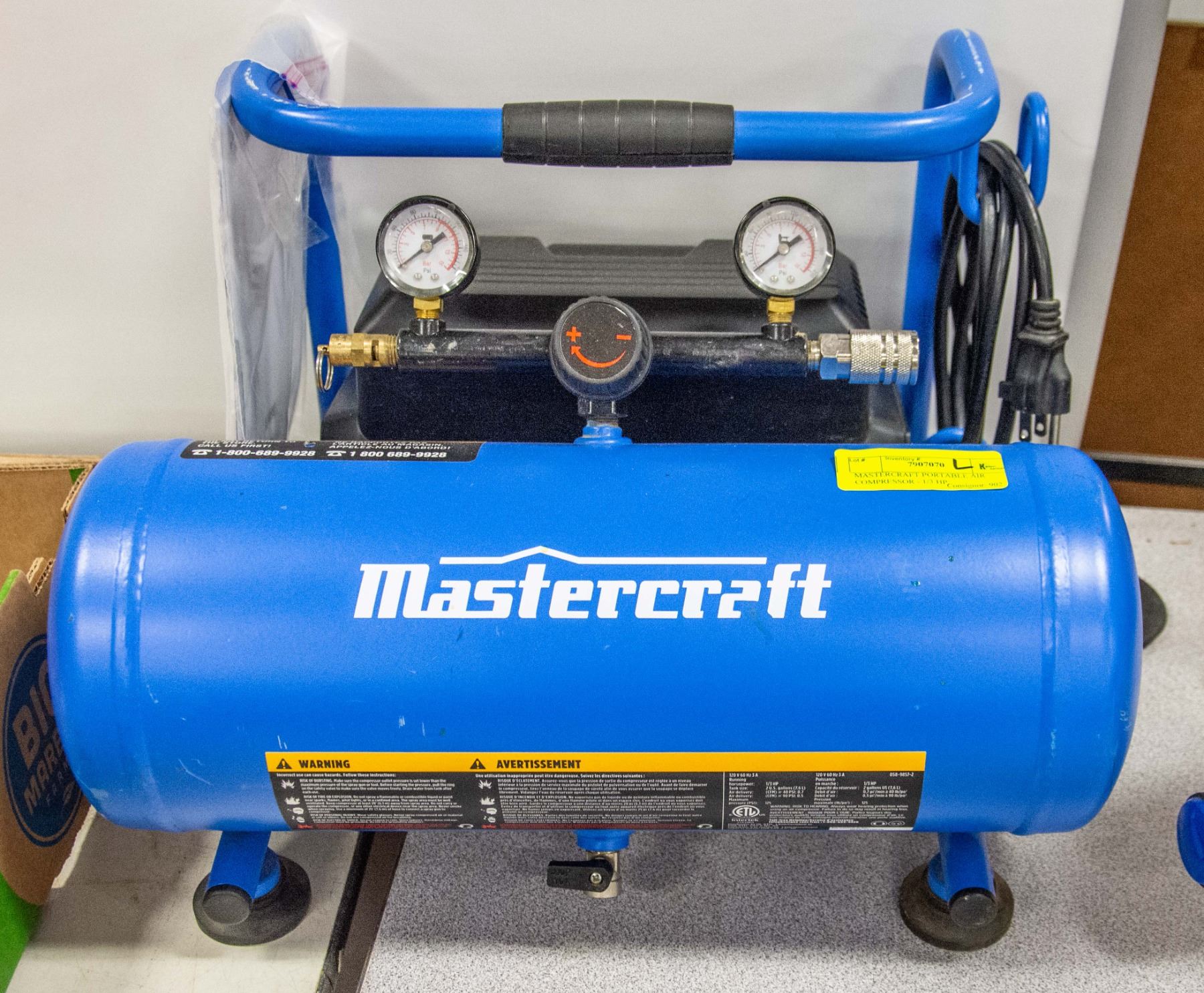 MASTERCRAFT PORTABLE AIR COMPRESSOR - 1/3 HP,