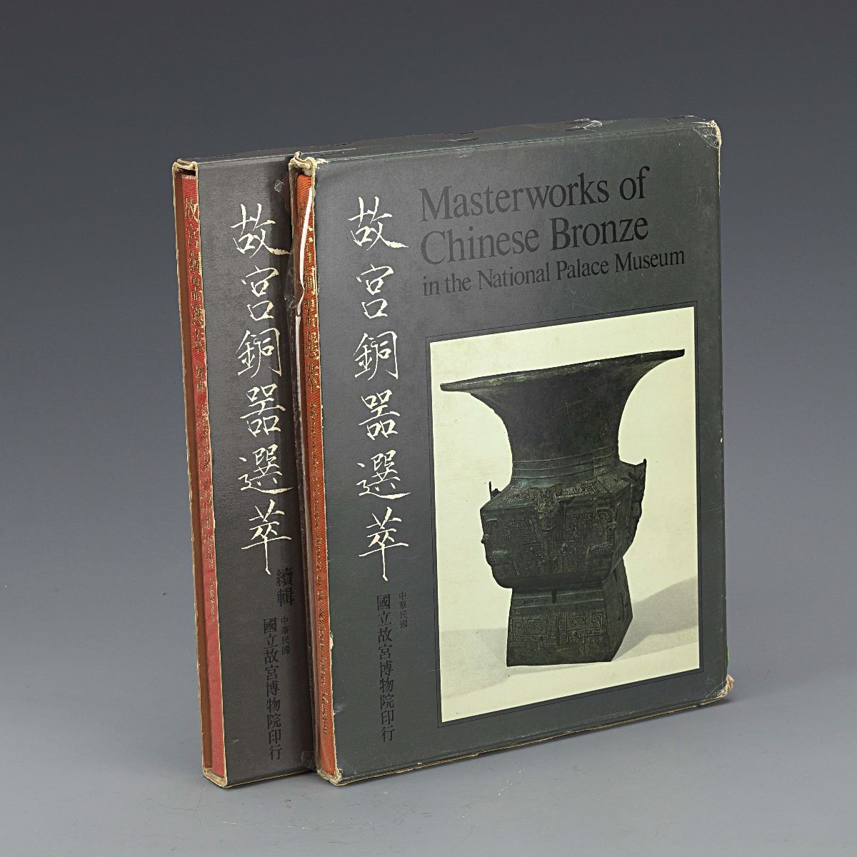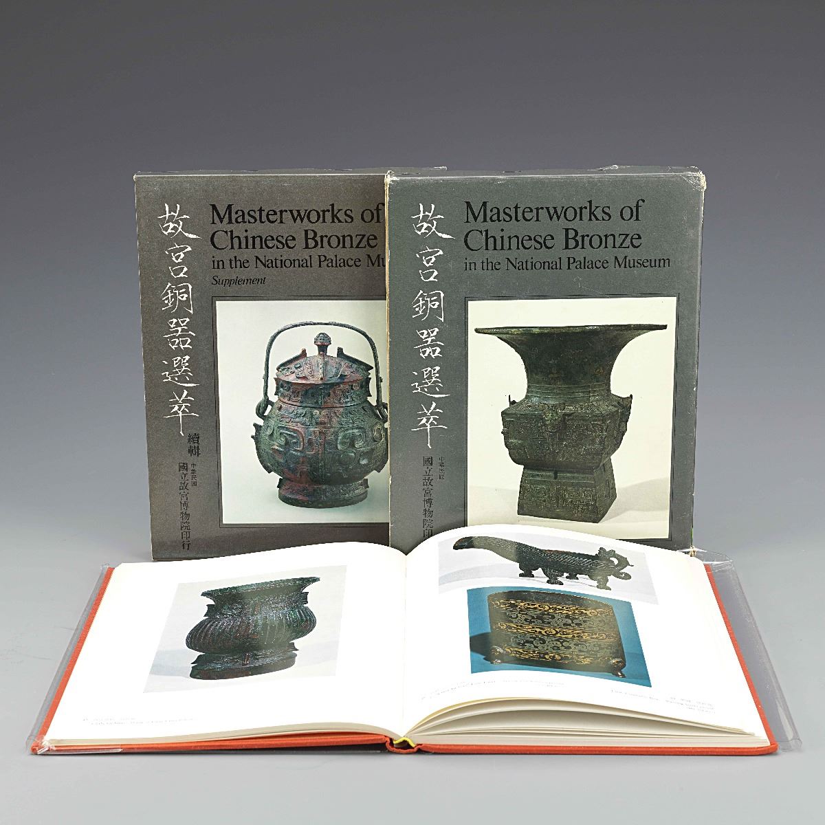 Two volume hardbound set. The second one is supplement. Masterworks of Chinese Bronze in the National Palace Museum. Bound in red cloth. Length 11.25" Width 8.75"